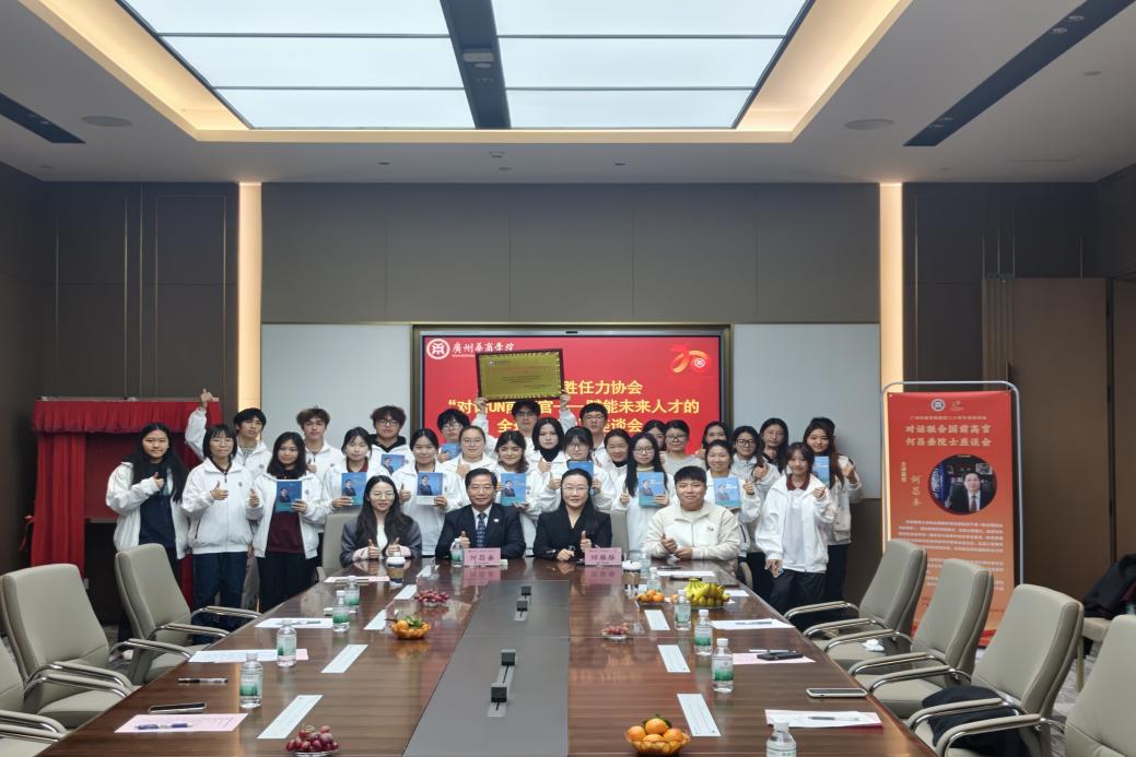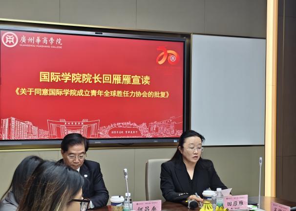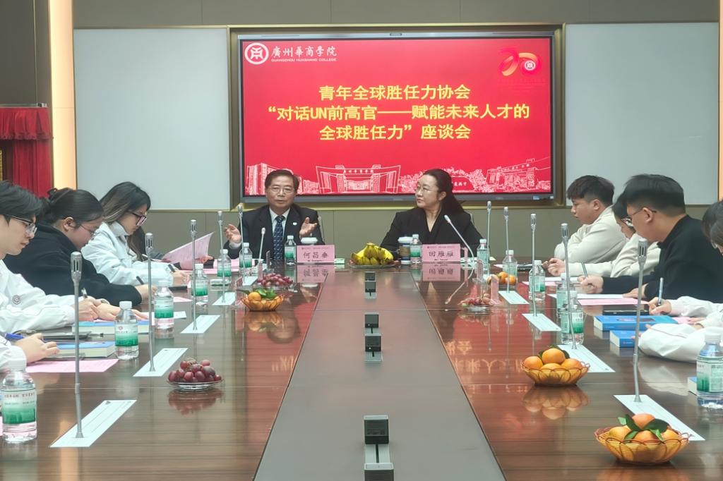 值广州华商学院建校二十周年之际,为拓宽青年学子国际视野,深化其对全球胜任力的认知,2025年12月26日,国际学院于广州校区国际会议中心A22会议室举办了"对话UN前高官:赋能未来人才的全球胜任力"主题座谈会。联合国粮农组织原副总干事(联合国副秘书长级别)、国际欧亚科学院院士何昌垂博士应邀出席,与青年全球胜任力协会、习近平外交思想青年研学社全体会员共话国际组织发展、全球胜任力培育及国际形势。国际学院回雁雁院长主持了座谈会,学院学工负责人、习近平外交思想青年研学社指导教师吴锦涛,来华留学生辅导员、青年全球胜任力协会指导教师郝自秀全程参会。