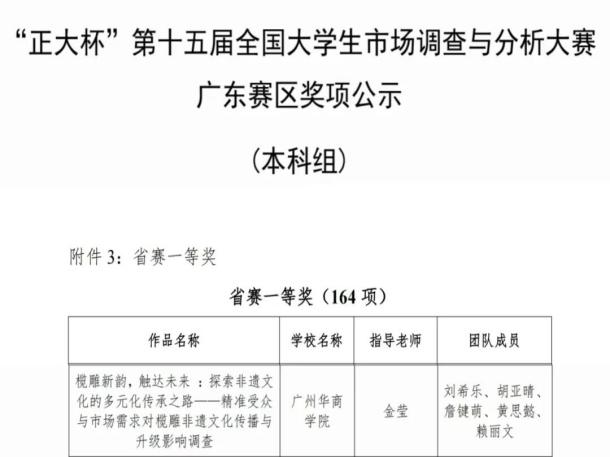 国际学院学子组成的“榄韵未来探索队”在“正大杯”第十五届全国大学生市场调查与分析大赛广东赛区选拔赛中,获得省赛一等奖。