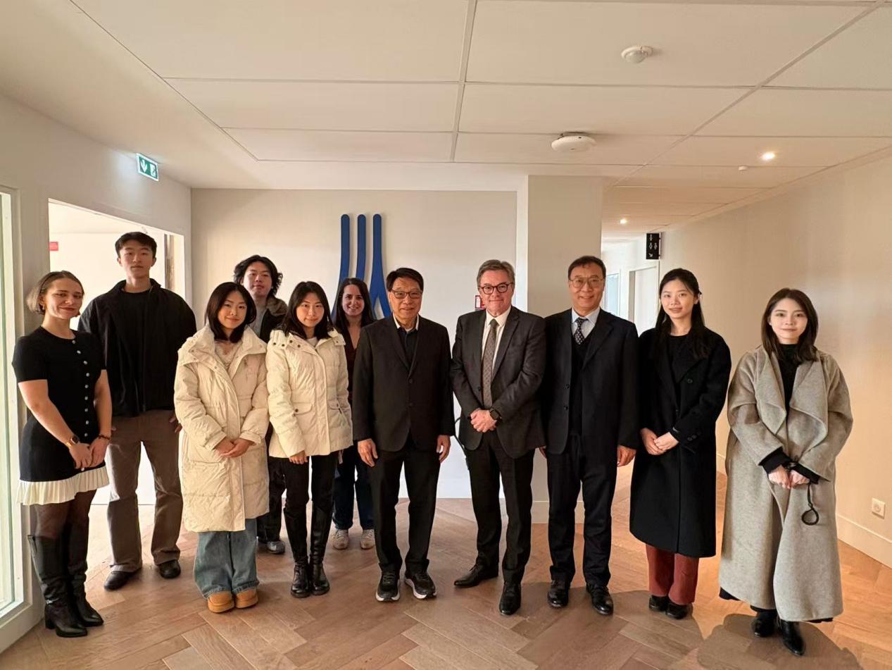 为拓宽学生国际视野,培养严谨求实的科学素养与钻研精神,在学校全额奖学金资助下,国际学院李沛、余意、石睿妮三位同学于2026年2月24日至28日,与学校第十一届国际精英计划大赛获奖学生一同赴法国,拜访学校名誉校长、诺贝尔化学奖得主让·马里·莱恩(Jean-Marie Lehn)教授。此行由中国科学院院士、广州华商学院首席科学家陈新滋教授及国际交流与合作处处长王文忠带队,学子们在跨文化学术交流中开阔视野、涵养学风,汲取前沿科研理念。
