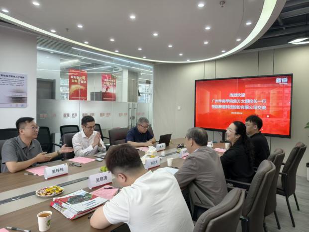 为深入了解企业数字化转型的前沿动态,精准对接国际化人才培养需求,全面落实学校高素质应用型人才培养的办学定位与目标,2026年4月10日,广州华商学院副校长焦方太率国际学院院长回雁雁、学工负责人吴锦涛、毕业班辅导员张清影一行,前往广东用友软件有限公司及新道科技股份有限公司,开展校企合作洽谈与就业需求对接。新道科技股份有限公司广东分公司副总经理曾祥伟、教育规划总监魏闯、校企合作总监黄梓伟热情接待了来访团队。