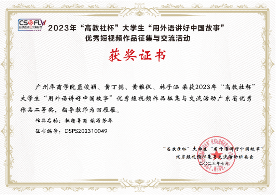 近日,2023年“高教社杯”大学生“用外语讲好中国故事”优秀短视频作品征集与交流活动广东省优秀作品结果出炉。