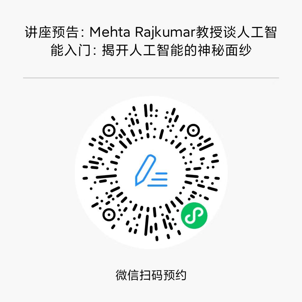 【讲座预告】Mehta Rajkumar教授谈人工智能入门:揭开人工智能的神秘面纱