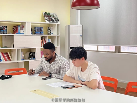 为了满足大学生们的个性化需求,并有针对性地提高英语表达能力,在学院安排的咨询时间里,同学们也主动围在Frank周围请教。国际学院回雁雁院长也参与部分环节。