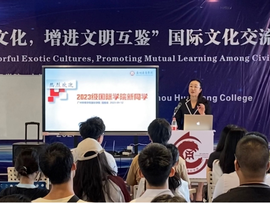 回雁雁院长从学校办学历史、国际化特色、联合培养优势和成长在华商等四个方面对学校、国际学院和特色建设进行了系统讲解。她从学校发展历程角度,展示了华商学院经教育部批准独立设置后取得的科研成果以及硕士学位授予权建设单位和博士工作站的建立与学校发展和同学们成长之间的关系;通过介绍华商教育集团海外办学的优势,展示了同学们在学期间可获得的多种途径和形式的海外研学机会;通过介绍剑桥大学、牛津大学和哈佛大学的传承关系,分析了他们在世界高等学校体系中的影响力,进而引出华商国际学院海外联合培养学校的地位和作用;通过介绍广州的国际化地位和在粤港澳大湾区发展中的作用,明确了开设特色专业方向的必要性和服务地方经济发展的思路;通过介绍借助“2+2”和“3+1”项目成功就读QS排名100海外高校硕士研究生的优秀毕业生,为大学生规划了参加政府选调生和参与香港优才计划的可行性;通过介绍剑桥、牛津大学学院制特点,提出国际学院书院制管理模式的优势和对复合型人才培养的重要性;通过对西方社会法治理念的嵌入,引出大学生对规则的重视,同时介绍了与同学们密切相关的规章制度。