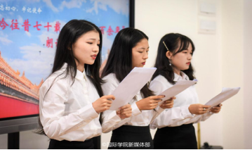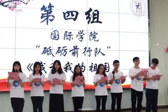 在朗诵比赛决赛中,八名国际学院代表选手带来了主题为《我和我的祖国》的精彩朗诵,他们饱含深情,声声道出对祖国的热爱,无不展现作为中国人的自豪。