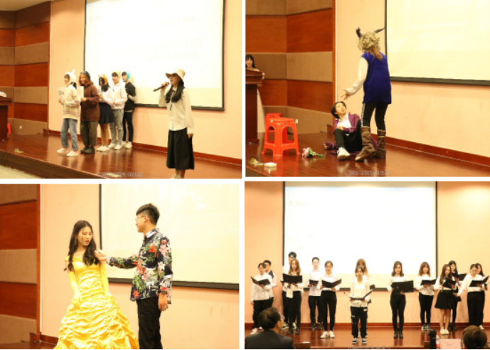 此次晚会的节目精彩绝伦,内容丰富多彩。街舞《Warning》为晚会带来火热的开场。歌舞剧《玛丽亚和孩子们》里顽皮可爱的表演给现场带来无比的欢乐;钢琴独奏《降E大调间奏曲》优美的旋律带观众们遨游在音乐的殿堂,舒缓的弹奏增添了几分高雅的韵味;话剧《美女与野兽》情节跌宕起伏,完美呈现西方经典;朗诵《Love,Dream&Happiness》抑扬顿挫,富有感情,字里行间流露英文的美妙;合唱《I Love You 3000》婉转动听的歌声萦绕耳旁;歌舞剧《TheWhole World Celebrateed》唱歌与跳舞相结合,体现国际学院学子青春活力。