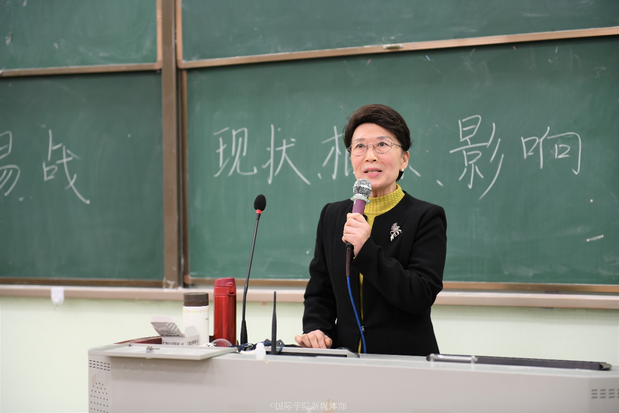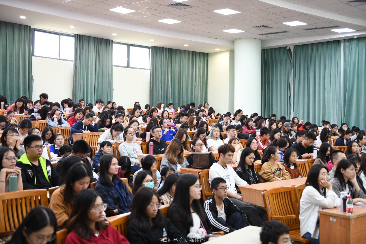 2019年3月26日15:00,由华商国际学院举办的文化素质系列讲座(六)、暨南大学陈红蕾教授主讲的“中美贸易战:现状、根源、影响”主题讲座在励志楼D308教室举行,此次讲座受到我校广大学子的热烈欢迎,不仅会场座无虚席,就连过道上、讲台两边都挤满了学生。