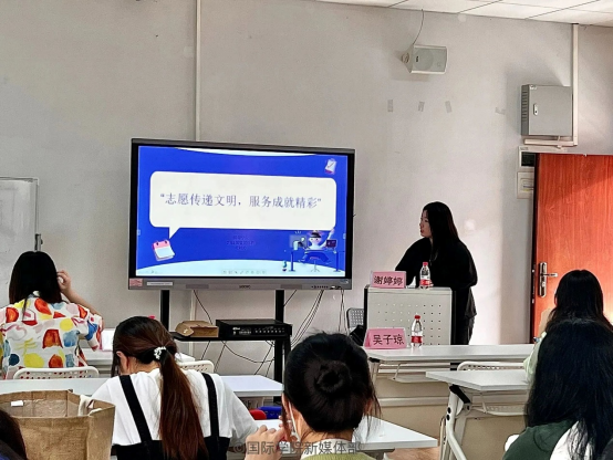 志愿服务勇践行,先锋模范齐学习,为鼓励同学们积极投入志愿活动中,提高对志愿服务的积极性和热情,躬行实践,肩负起时代责任。华商国际学院于2023年4月19日12:30在启智楼404,举办了第三次文明安全纪律教育月优秀学生典型宣讲会。本次会议邀请了国际学院团委副书记谢婷婷同学,分享其大学期间的学生骨干经历和社会实践经验。