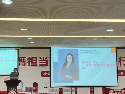 讲座包括牛津、剑桥的悠久历史,优美的自然环境,丰富的文化沉淀和创新的教育方式四个部分。