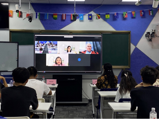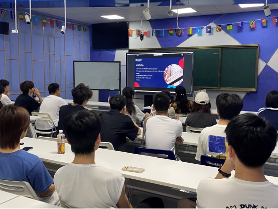 2024年9月13日上午通过线上连线方式,澳大利亚中汇学院副院长Dr. Sweta Jain Sud及国际融合项目经理Mr. Rhys Williams,围绕“探索人工智能未来:计算机科学与技术新视界”这一主题分享了对该项目的建设思路、培养模式、工作实习、就业前景等内容。国际学院回雁雁院长,国际学院24级计算机科学与技术专业全体学生以及市场营销、国际经济与贸易和英语等专业大学生现场聆听并与EIA领导和老师进行了互动。