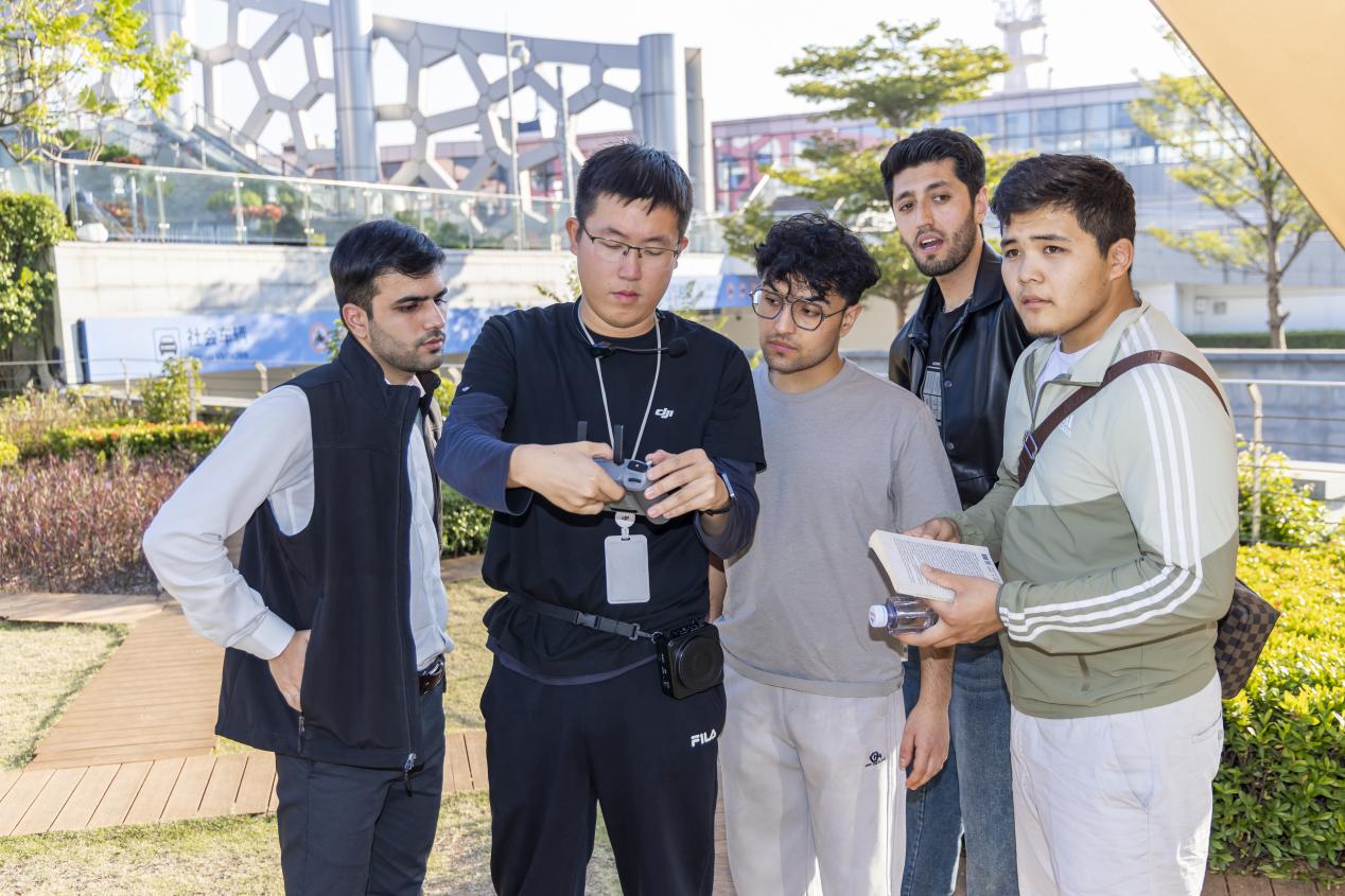 在随后的户外无人机飞行体验中,留学生们在大疆专业人员的指导下亲身体验飞行。从平稳起飞、空中悬停到精准降落,他们逐步掌握了基础操控技巧,并尝试运用航拍视角捕捉独特风景。