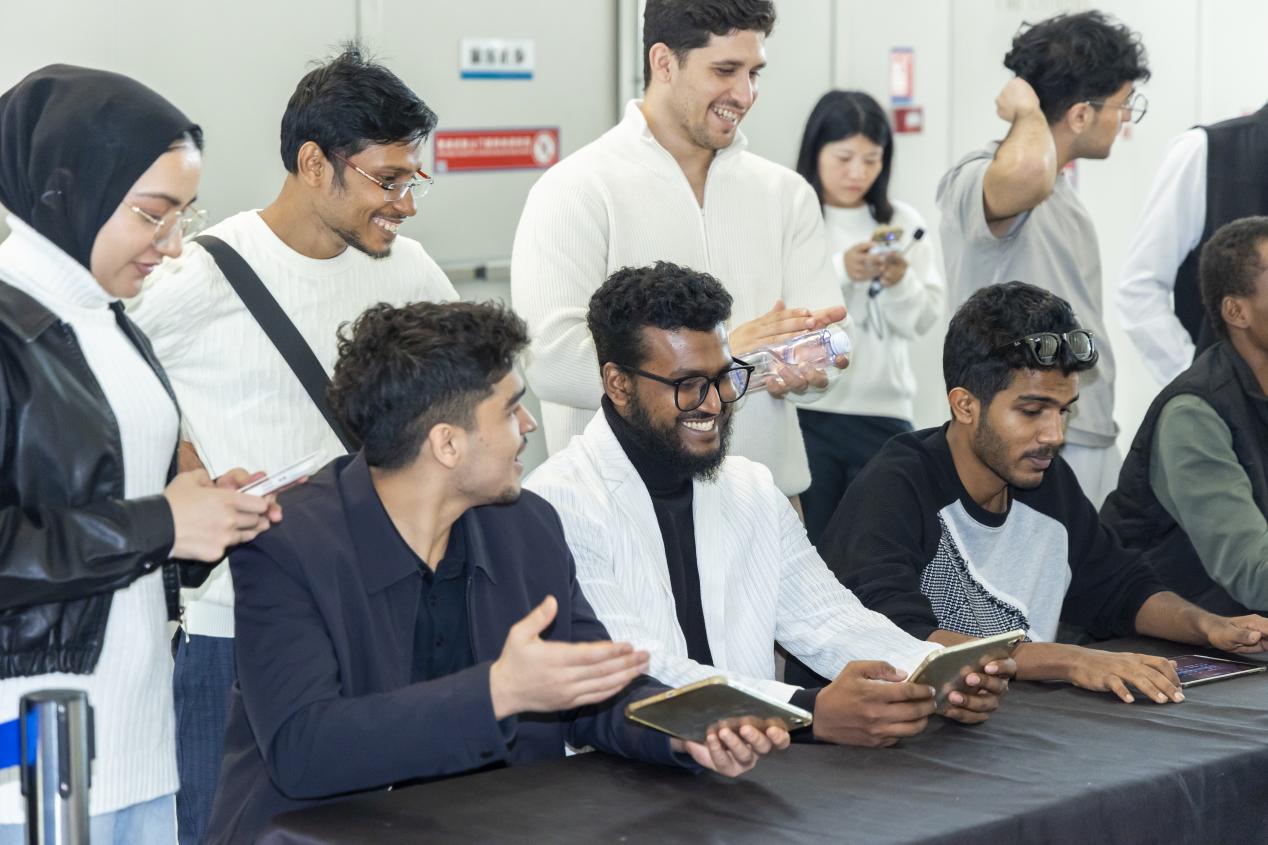 在RoboMaster展厅,留学生们通过专业讲解、近距离接触实体无人机及观看演示视频等多种方式,系统了解了大疆无人机技术的发展历程、具有颠覆性的产品矩阵及其广泛应用场景,以及面向青少年的科普教育项目。这种多模态的展示形式,使留学生们深刻感受到中国工匠精神的实践内涵,体会到科技创新驱动社会发展的“中国方案”,也进一步加深了他们对大疆技术实力与人工智能应用前景的理解。对多数人而言,这是他们第一次系统性地认识到,无人机已远不止是“会飞的相机”,而是一个融合智能技术与产业生态的创新平台。