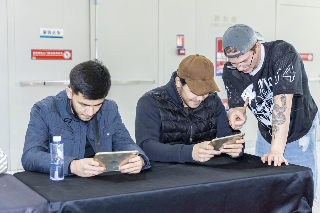 在机器人竞赛环节,留学生们通过FPV第一视角沉浸式参与机甲大师对抗赛,亲身体验了全向移动、精准射击与团队协作的科技竞技乐趣。